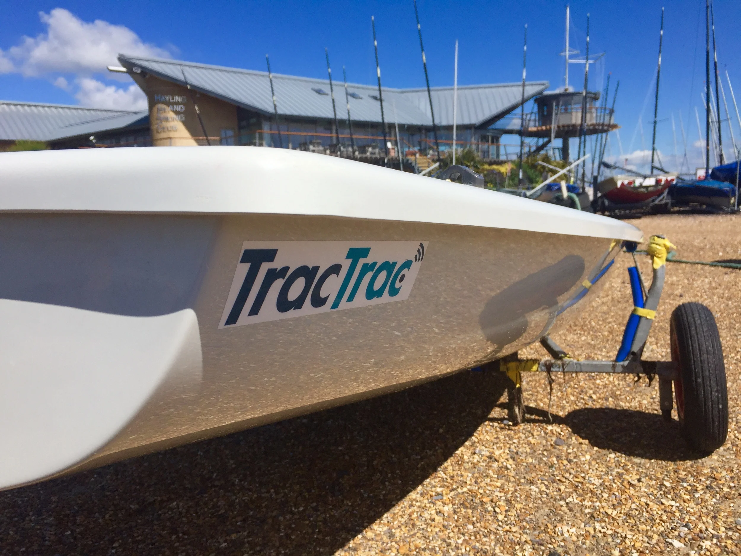 One of my sponsors, TracTrac UK, stickers on my boat.