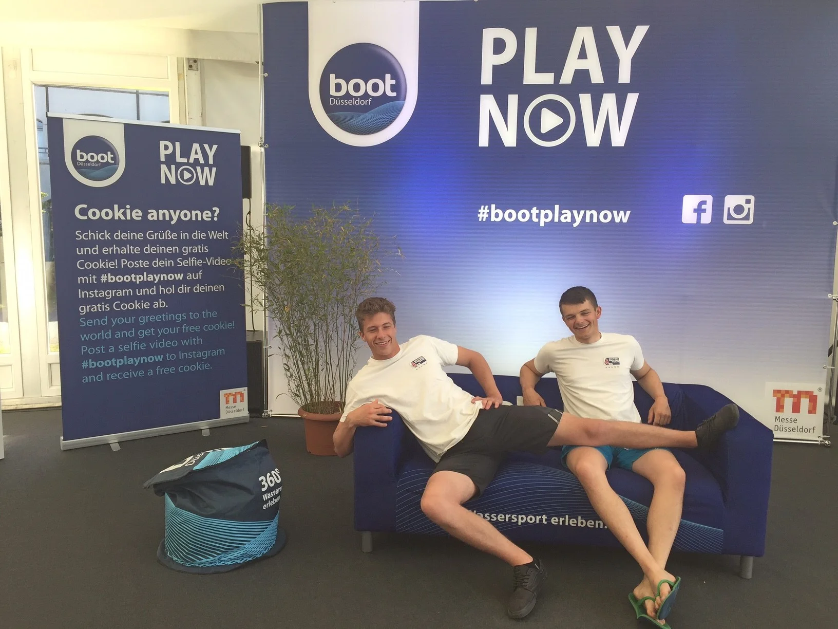 Kiel Week is a huge festival not only about sailing and as a result there was a huge carnival style setup with many stands to visit. In the sailors lounge one company was giving away free cookies if we took a picture on the sofa so not wanting to turn away delicious food naturally my teammate Jack and I quickly agreed!